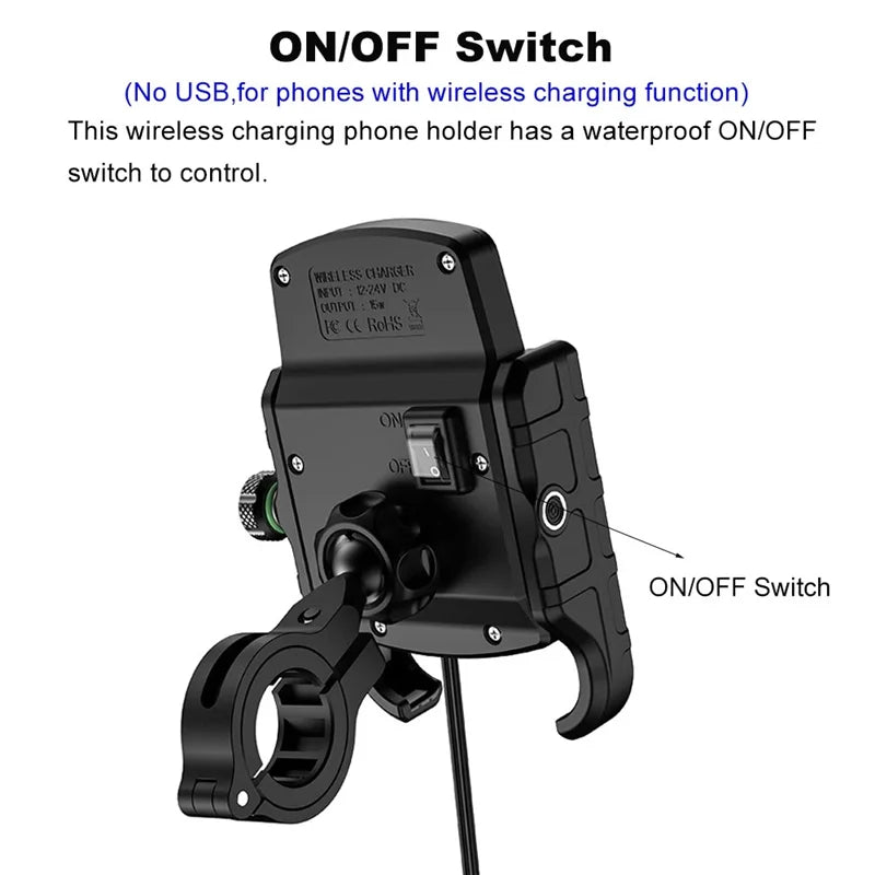 Three models: Motorcycle only Phone Holder/with QC 3.0 USB Quick Charger / with Wireless Charger